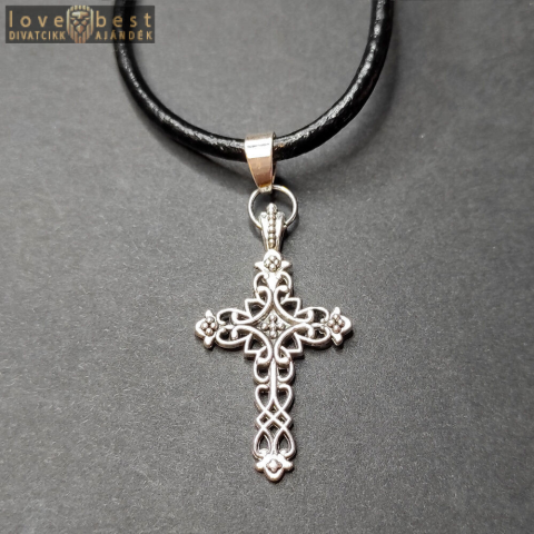 MariaKing Antik hatású díszes kereszt medál bőr lánccal