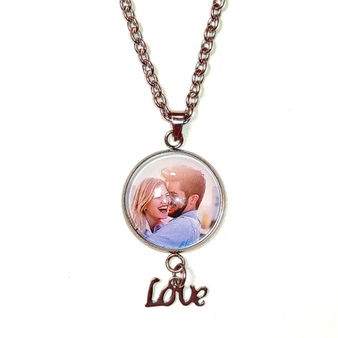 MariaKing Fényképes nyaklánc Love charmmal, rozsdamentes acélból, ezüst szín