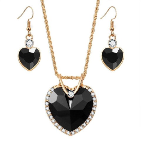 MariaKing From Maria King szív alakú medál nyaklánccal, fülbevalóval, fekete kővel