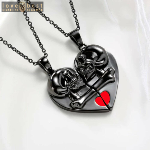 MariaKing Koponya motívumos páros mágneses Szív medál nyaklánccal, fekete