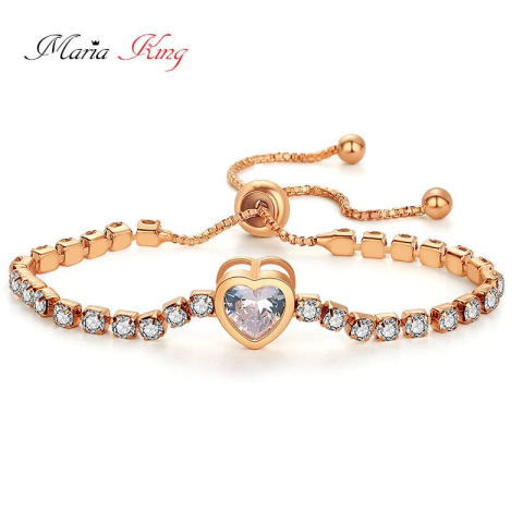 MariaKing Kristályokkal kirakott karkötő szív dísszel, rose gold színű - állítható méret