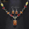 MariaKing Mesterséges borostyán színes szögletes nyaklánc és fülbevaló szett