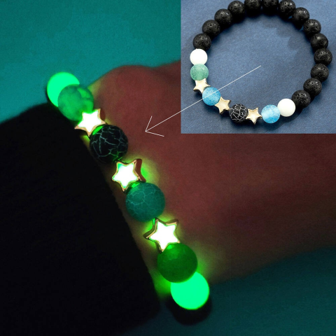 MariaKing Természetes kő karkötő csillag motívumokkal, sötétben zölden világít karkötő 1 kép