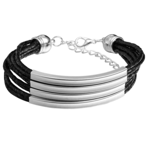 MariaKing Többrétegű fémdíszes karkötő, fekete-ezüst