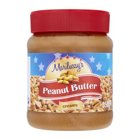 Marilussys földimogyoróvaj krémes 350 g Összetevők: FÖLDIMOGYORÓ (94,8%), cukor, teljes mértékben hidrogénezett repceolaj, só. A földimogyoró származási helye: nem-EU. Nyomokban más mogyoróféléket is tartalmazhat (kesudió, mandula).