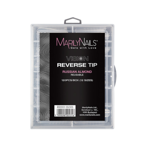 MarilyNails - REVERSE TIP - RUSSIAN ALMOND - 120db - 12 méret Újrahasználható Reverse tipek a Vision akrilzselé családhoz Átlátszó, vékony és rugalmas tipek akrilzselés reve Újrahasználható Reverse tipek a Vision akrilzselé családhoz Átlátszó, vékon