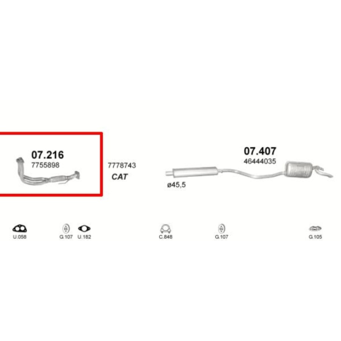 Marix Kipufogó, leömlőcső, Fiat Punto hatchback 1.2, 1993-1997 (KC)