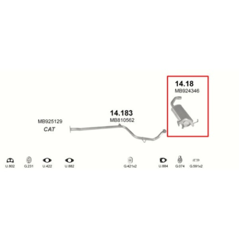 Marix Kipufogódob, hátsó, Mitsubishi Colt 1.3-1.6, 1992-2003.06 kipufogó alkatrész 1 kép