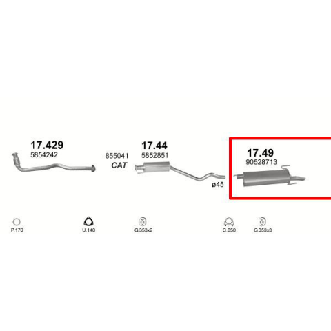 Marix Marix hátsó kipufogó dob, OPEL Astra F kipufogó alkatrész árgrafikon