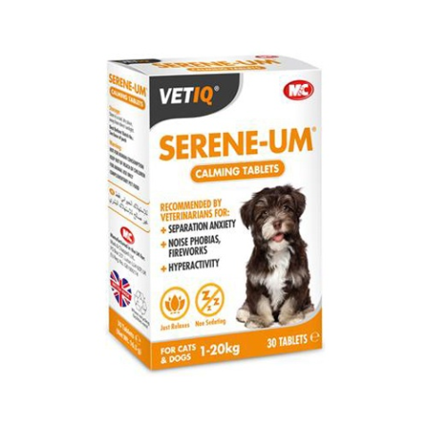 Serene-Um tablettaTermészetes táplálékkiegészítő hyperaktív, ideges, agresszív kutyák, macskák és egyéb kisállatok nyugtatására, lecsendesítésére. Állatorvosok ajánlásával utazásra, tűzijáték és viharok eseténA Serene-Um tabletta L-triptofánt, egy fehérjékben található aminosavat tartalmaz, ami az alvási folyamatokban szerepet játszó szerotonin előanyaga. Az L-triptofánt tartalmazó eleség elfogyasztásával ennek az aminosavnak a mennyisége emelkedik, a