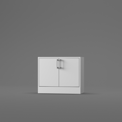A szekrény felső lapja kivágással rendelkezik a mosogató szifon számára. A szekrény tárhelye 2 ajtó mögött rejtőzik polc nélkül.