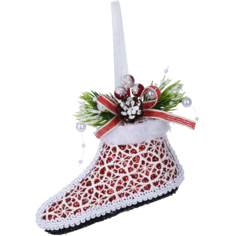 1 kép MÁRKA NÉLKÜL DEKOR CSIZMA FÜGGŐ 9CM, CSILLOGÓ PIROS, 6 TÍPUS