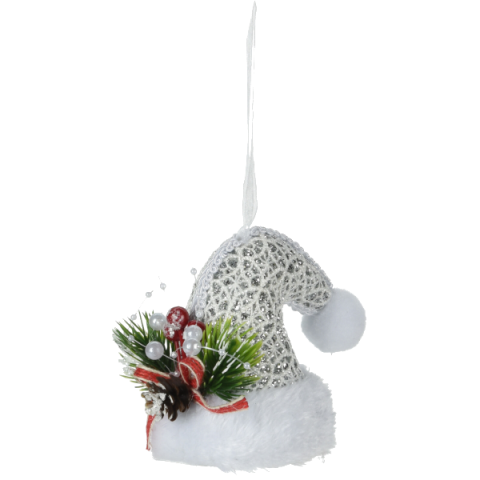 1 kép MÁRKA NÉLKÜL DEKOR SAPKA FÜGGŐ 10CM, CSILLOGÓ EZÜST 6 FÉLE MODELL