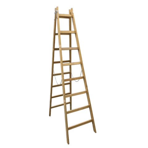 1 kép MÁRKA NÉLKÜL FA FESTŐLÉTRA 8 FOKOS, VÖDÖRTARTÓ KAMPÓ, ERŐSÍTETT LÁB