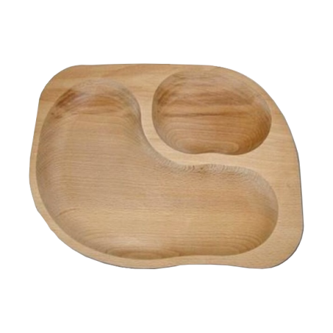 Fa tálaló 2 részre osztott. Bükk fa. 30x24x3 cm. Belső méretek: 13x30cm, 12x14 cm. Tisztítása: