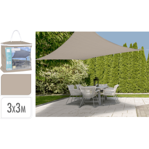 Teljes MÁRKA NÉLKÜL NAPVITORLA 300X300CM NÉGYSZÖGLETŰ HOMOK POLYESTER HORDOZÓTÁSKÁVAL termékleírás