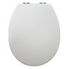 Fehér színű WC ülőke, polipropilén az anyaga, fehér színben. Lecsapódásgátlós, fém zsanérral.