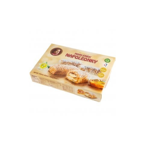 Klasszikus finomság vaníliás krémmelA Napoleonky Vaníliás Marlenka egy könnyű, réteges sütemény, amely a puha tészta és a krémes vaníliatöltelék tökéletes harmóniáját kínálja. A Marlenka márkától megszokott minőség és a természetes alapanyagok együttese valódi prémium élményt nyújt minden falatban.