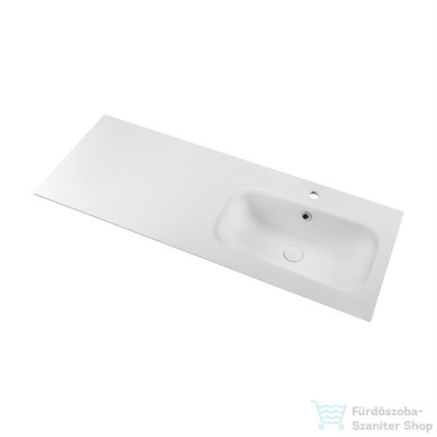 MARMY - ASPEN 120x46 jobbos mosdó - DESIGNED IN ITALY Ragyogó fényes fehér színben érhető el. A mosdón csapfurat van, a csaptelep a mosdóra szerelhető. Tartozék a TÚLFOLYÓSZETT. Vékony peremmagassága miatt kiválóan mutat pultba süllyesztve, valamin