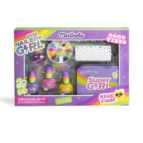 A csomag tartalma: 3db körömlakk Matricák Drágakő matricák Körömdíszítő kerék Szájfény tégely Bádogdoboz