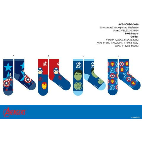 Marvel Bosszúállók gyerek pamut normál zokni - 4 pár/csomag - 27-30