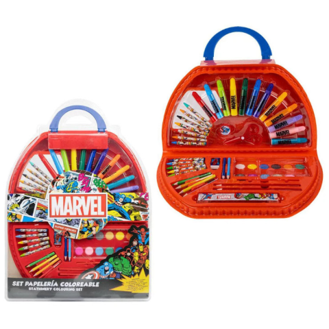 RAKTÁRRÓL AZONNAL! Avengers, Bosszúállók írószer szett 50 db-os Méret: 41x58 cm Tartalma: - 12 db vízfesték - 12 db filctoll - 12 db zsírkréta - 1 db ecset - 1 db keverőtálca - 2 db HB ceruza - 6 db színes ceruza - 1 db radír - 1 db faragó - 1 db vonalzó
