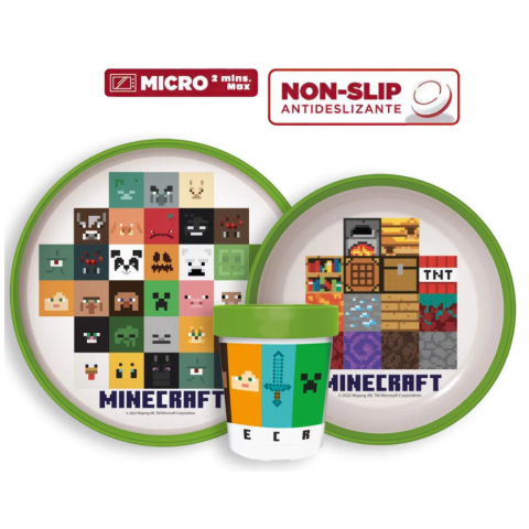 RAKTÁRRÓL AZONNAL! Minecraft csúszásmentes étkészlet, micro műanyag szett - BPA mentes - A termék környezetbarát, újrahasznosítható anyagból készült a Föld védelmében - Csúszásgátló talp rész A készlet tartalma: 1 db mélytálka (mikrózható műanyag) 1 db l