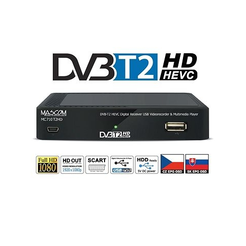 Set-top box - DVB-T2/T (H.265/HEVC), Full HD, EPG, felvétel: külső meghajtóra és usb meghajtóra, HDMI, SCART, Külső IR, LAN és USB Praktikus vevőkészüléket keresel a televíziódhoz? Akkor megeshet, hogy ez a kitűnő Mascom MC710T2 H.265 HEVC set top box lesz a megfelelő választás. A tuner DVB-T2 (H,265/HEVC) és DVB-T jelek fogadásá