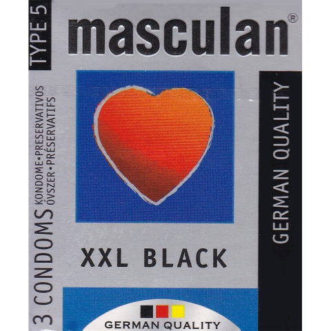 1 kép Masculan XXL fekete színű, kissé nagyobb méretű óvszer (3 db)