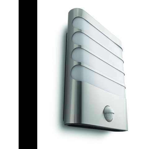 Mindig világosságra érhetsz haza A Philips myGarden Raccoon csiszolt rozsdamentes acél fali lámpa erőteljes megvilágítást biztosít kertedben. A LED-izzók, a szintetikus anyagok és a minimalista formatervezés modern jelleget adnak, míg a mozgásérzékel