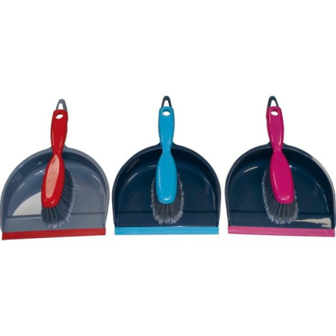 Masta kézi seprű és lapát gumis éllel. A szett piros, kék és rózsaszínben kapható. A kézi seprű és a lapát műanyagból készült. Ideális a háztartási takarításhoz.