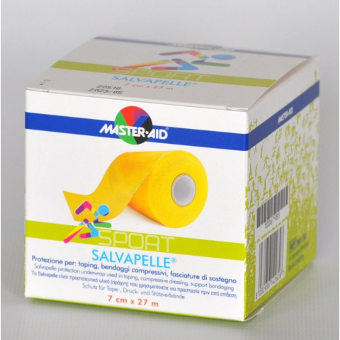 Egyesével csomagolt Underwrap. A Master-Aid Sport Salvapelle (bőrvédő szalag) speciális felhasználásra ajánlott. Főként tartó kötések alkalmazásakor a bőrfelület védelmére szolgáló könnyű és vékony 100% poliuretán hab szalag. Könnyen téphető, a szer