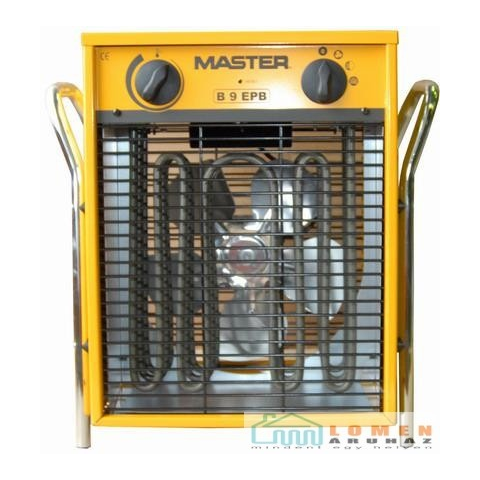 "A Master B9EPB 9kW-os ventilátoros gyorsfűtő folyamatos üzemre is alkalmas, ideális kisebb, időszakosan fűtött helyekre, kimondottan ajánlott pl. felújítási munkák során, festőknek, burkolóknak, szakipari munkát végzőknek. Nagy előnye a csendes, füst-, gáz-, és szagmentes üzemelés, a könnyű használat, és a gyors üzembe helyezhetőség. Csak minősített, kiváló alkatrészeket használnak, ezzel biztosítva a készülék megbízhatóságát és tartósság