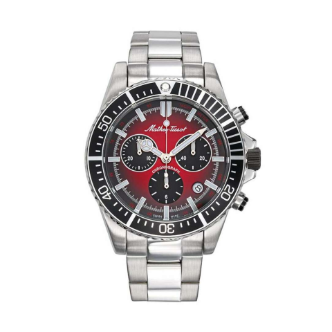 Egy látványos kronográf modell a Mathey-Tissot kollekciójából. A panda stílusú számlapot az árnyalt Monza piros szín teszi igazán különlegessé és dinamikussá. A 100 méteres vízállóságra pedig a megerősített menetes hátlap,