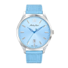 Könnyedén elegáns stílus égszínkék színben. A valódi bőrből készült szíj tökéletesen harmonizál a jól megtervezett óratokkal és a színazonos számlappal. Karcálló zafírral és 2 év garanciával