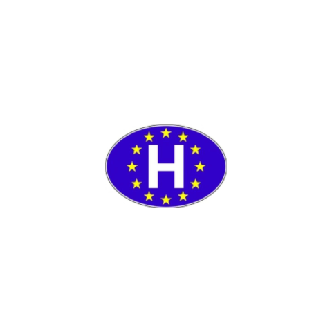 EU-csillagos „H” matrica járművekre – látványos, szabályos országjelzés Ez a matrica azoknak készült, akik szeretnék, ha járművük országjelzése nemcsak megfelelne a szabályoknak, de vizuálisan is kifejező lenne. Az ovális formán belül egy nagy fehér „H” karakter szerepel sötétkék háttéren, amelyet 12 aranysárga csillag vesz körül, az Európai Unió jelképeinek megfelelően. A kontrasztos színek és az élénk grafika nemcsak stílusos megjelenést biztos