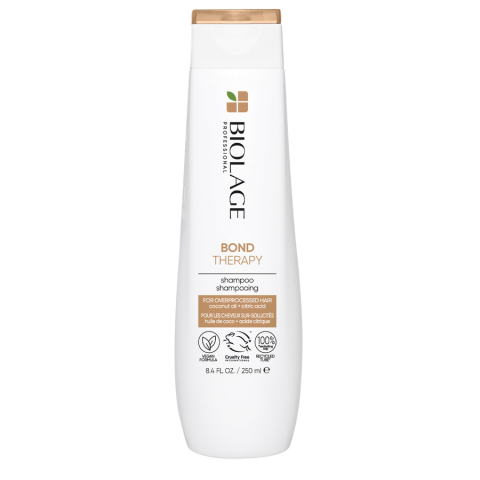 Matrix Biolage Bond Therapy kötéserősítő sampon sérült hajra, 250 ml- Szulfátmentes sampon vegykezelt, roncsolt hajra- Gyengéden tisztít, csökkenti a töredezést és belülről erősíti a hajat- Kókuszolajjal és citromsavval táplálja a hajat- Megerősíti a meggyengült kötéseket, így a haj erősebb, puhább és intenzíven hidratált lesz anélkül, hogy elnehezedne- Már egyetlen használat után is látványos javulás érhető el- Rendszeresen használva a haj kevésbé
