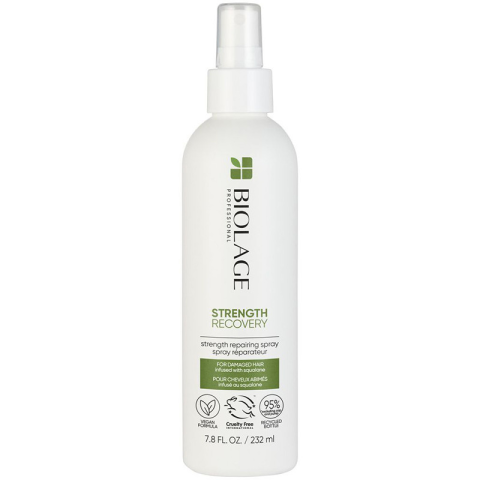 A Biolage Strength Recovery Strength Repairing Spray egy könnyű, kihagyható kezelés, amely megerősíti a sérült hajat és megvédi a hajformázás hőjétől. A vegán szkvalánt tartalmazó formula táplálja és helyreállítja a hajat anélkül, hogy nehéz vagy zsíros l