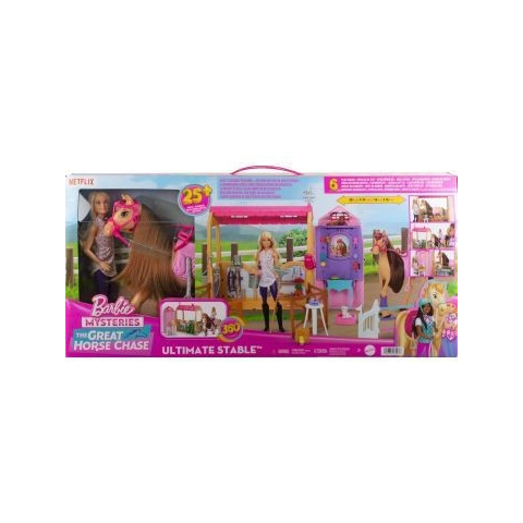 A Netflix Barbie sorozatának világából megérkezett a több mint 25 darabos Barbie és Szeder pajta játékszett. A 6 darab játéktéren a gyerekek segíthetnek Barbie babának megetetni a lovát zöldségekkel az etetőnél, lecsutakolni és lekefélni a lóápoló részen, edzeni az ugró kerítésnél, feldíszíteni a trófeafalat és kertet gondozni a rózsákkal. Az istálló összecsukva egyszerűen tárolható.