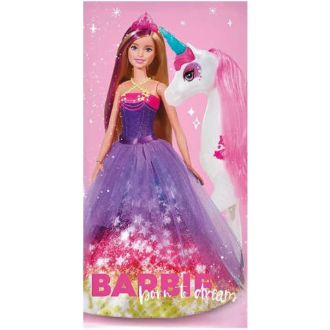 RAKTÁRRÓL AZONNAL! Barbie Born to Dream fürdőlepedő, strand törölköző 70x140cm Anyaga: 100% pamut Mérete: 70x140cm Ez a termék OEKO-TEX Standard 100 minősítéssel rendelkezik, mely kifejezetten csak olyan összetevőket tartalmaz, ami az egészségre ártalmat