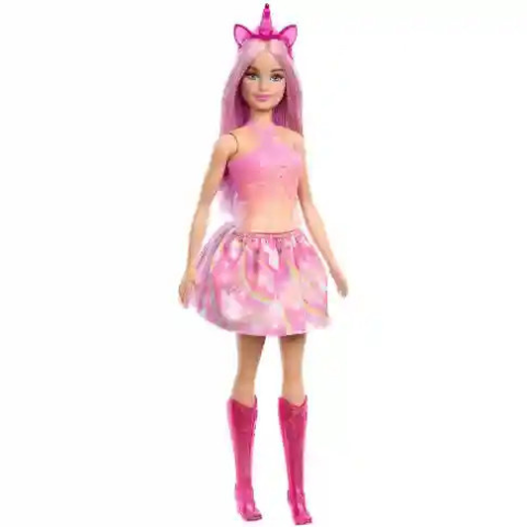 Ez a Mattel Barbie Dreamtopia unikornis baba egyszarvúnak öltözött. Pasztellrózsaszín hajában egy hajpántot visel, amelyhez rózsaszín szarv és hozzá illő fülek tartoznak. Formázott felsőjén egy öv található, amelyhez egy puha farok illeszthető, amely