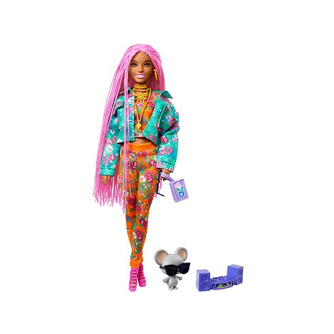 Mattel Barbie Extra - rózsaszín copfokkal és virágos leggingsben