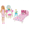 Mattel Barbie hálószoba babával: Barbie tudja, hogy a pihenés mennyire fontos, ezért ebben a hálószoba játékszettben minden hangulatos, pihentető és kényelmes. Az ágy, az éjjeliszekrény, a fésülködőasztal és a sok tematikus kiegészítő segítségével a gyere