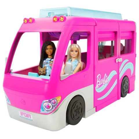 A Barbie lakóautó készlet több mint 60db kiegészítőt tartalmaz. A célhelyre érve az autó oldalajtóit kinyitva, majd a csomagtartót lehajtva indulhat a szórakozás. A készlet rendelkezik fürdőszobával, konyhával, hálózsákkal, tévével és még sok más kiegészí