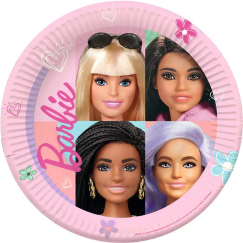 RAKTÁRRÓL AZONNAL! Barbie papírtányér 8 db-os 23 cm 8 db tányér/csomag Anyaga: papír