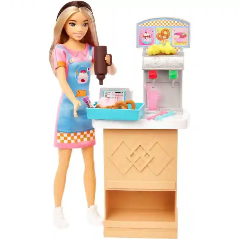 A Barbie Skipper baba különféle munkahelyek felfedezésével ismerkedik meg a munka világával. Ezzel a büfés játékszettel a gyerekek szabadon engedhetik fantáziájukat. A Barbie játékszett tartalmaz egy Skipper babát, aki a filmből inspirált munkaruhát visel