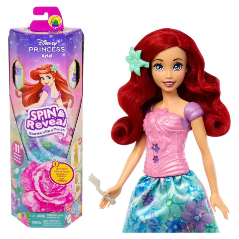 Csobbanj bele a tengeri kalandokba a Disney Hercegnők: Varázslatos Meglepetés Ariel babával! Ariel, a kis hableány most még elbűvölőbb, mint valaha, és készen áll, hogy elvezessen a tenger mélyére rejtett titkok világába. Ez a különleges baba Spin & R