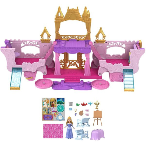 1 kép Mattel Disney HWX17 2in1, hercegnő kocsi és kastély, Aurora baba, 3 játékszint