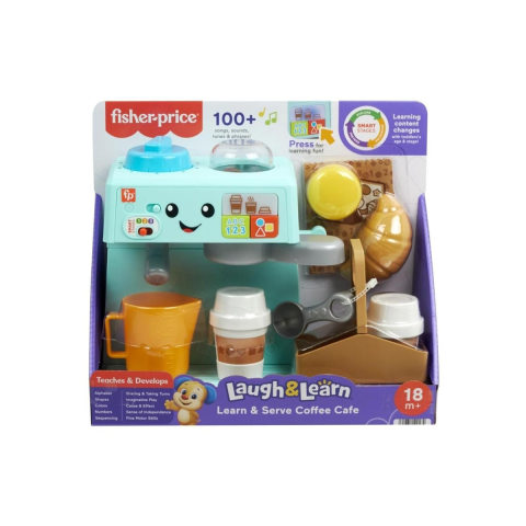 A Fisher-Price Kacagj és Fejlődj Babarista Kávéfőző szettel gyermeked igazi kávéházi kalandokat élhet át! Ez az interaktív játék nemcsak szórakoztat, hanem tanít is, hiszen több mint 100 féle dallal, hanggal és kifejezéssel segít fejleszteni a kicsik nyelvi és motoros készségeit. A kávéfőző különböző gombjai, karjai és kiegészítői számos le