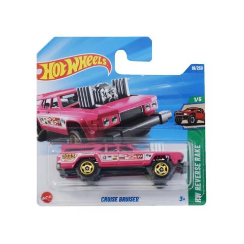 A Hot Wheels Cruise Bruiser egy vad és látványos autó, amely tökéletes választás a száguldás és a show szerelmeseinek! Ez a pink színű járgány hatalmas motorháztető-légbeömlővel és lángmintás grafikával hódít, amelyek garantáltan magukra vonják a figyelmet. A robusztus kialakítás és az aranyszínű kerekek különleges megjelenést kölcsönöznek ennek a